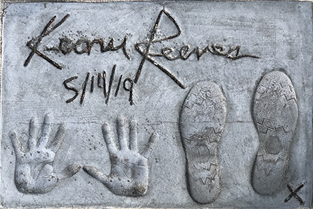 | TCL Chinese Theatre, Hollywood, California. Keanu Reeves Forecourt block. Executed by Santos Resendiz, Tuesday, May 14, 2019. 30 x 20 inches. |