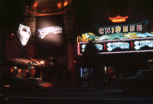 Mann's Chinese Theatre, Hollywood California. Exterior during the run, from Friday, May 16, 1986, of Top Gun.