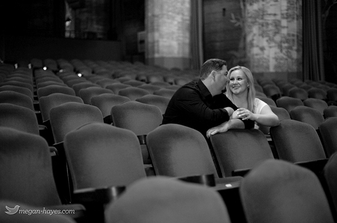 “The theatre is huge and also very dark inside which was challenging but fun at the same time!” Ms. Hayes told us. The groom, Robert, knew some of the people who work the theatre, so some space was created for he and Sara and Megan to do their shoot on April 11, 2013, just before the scheduled 1:00 PM matinee of Tyler Perry’s Temptation. The bride did her own hair and makeup. the groom—well—he did his also.